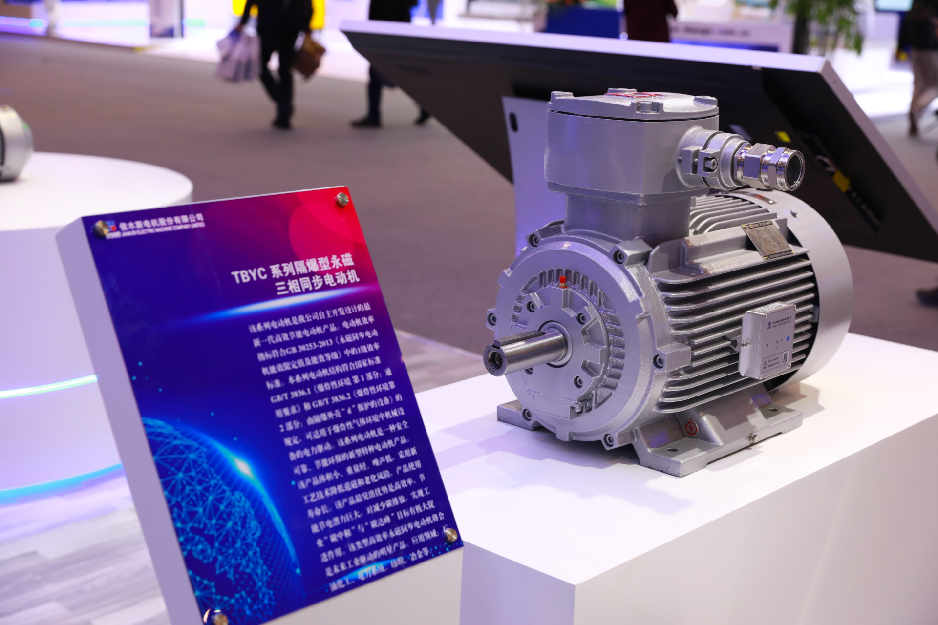 在本次展覽會(huì)上,佳電股份作為受邀企業(yè)攜高效電機(jī)、永磁電機(jī)、特種電機(jī)、電機(jī)配套產(chǎn)品、智能電機(jī)及在線監(jiān)測(cè)及云服務(wù)診斷系統(tǒng),向參展企業(yè)與現(xiàn)場(chǎng)嘉賓進(jìn)行了推介。
