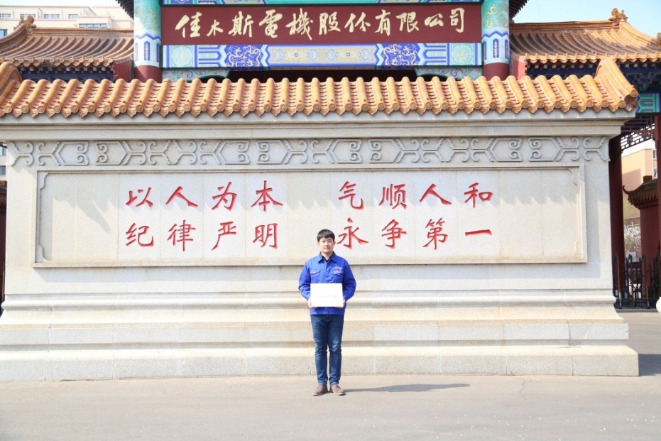 設(shè)計(jì)部高壓防爆電機(jī)設(shè)計(jì)室主任李興波獲得佳木斯第十二屆“佳木斯青年五四獎(jiǎng)?wù)隆毕冗M(jìn)個(gè)人稱號(hào)。